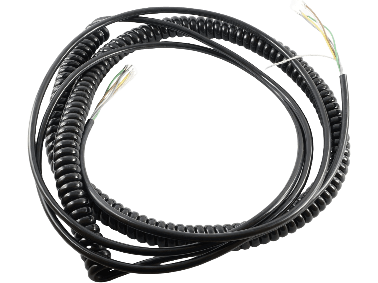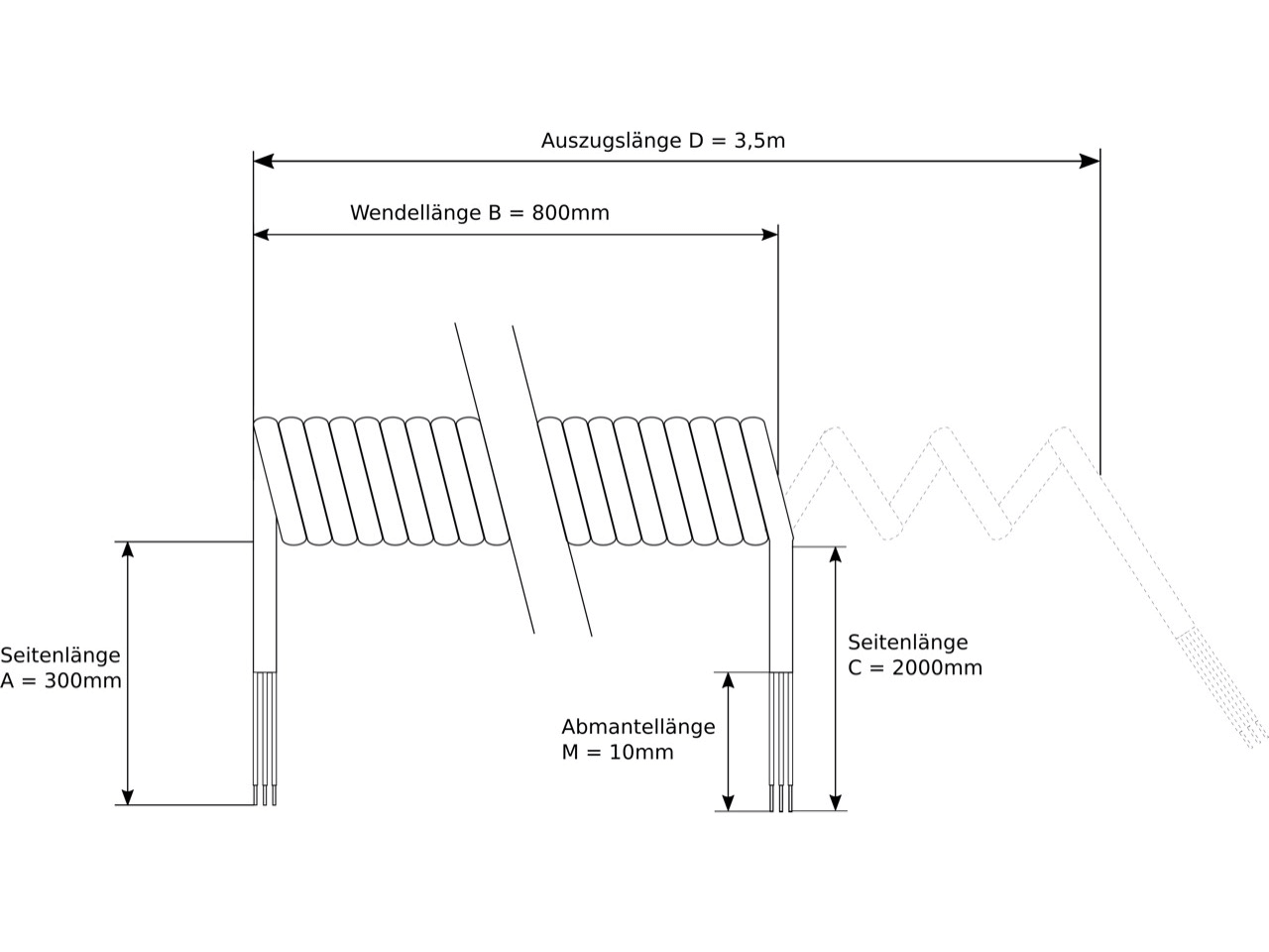 - Pluggable 5-core coil cord, straight cable ends 2,0m/ 0,35m length, can be extended to a max. length of 3,5m