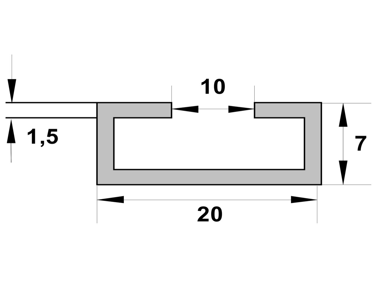 C-mounting profile steel width 20mm height 8mm length 1.0m