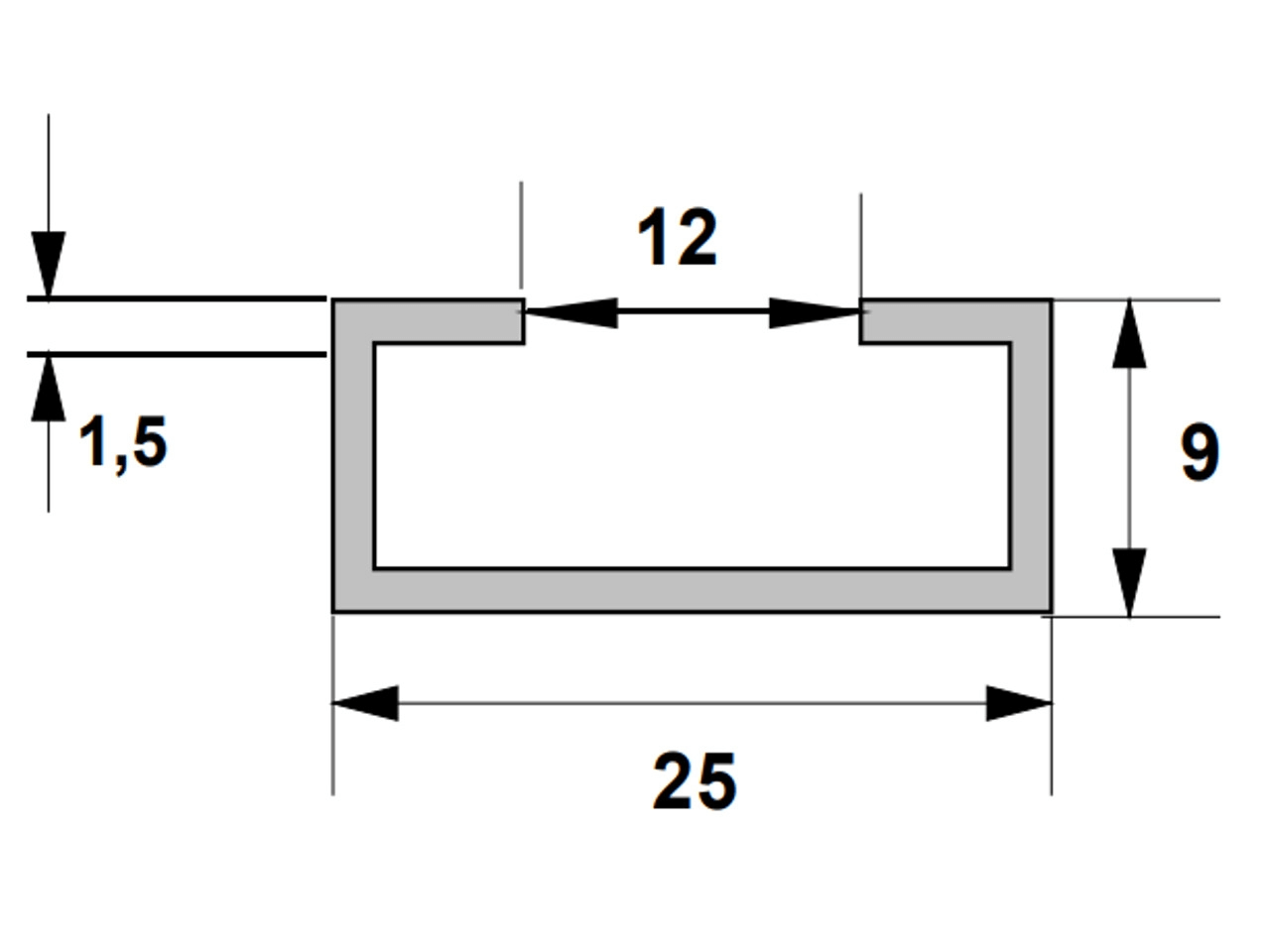 Aluminium-C-Profile Width 25mm Height 9mm 1,0m Rail