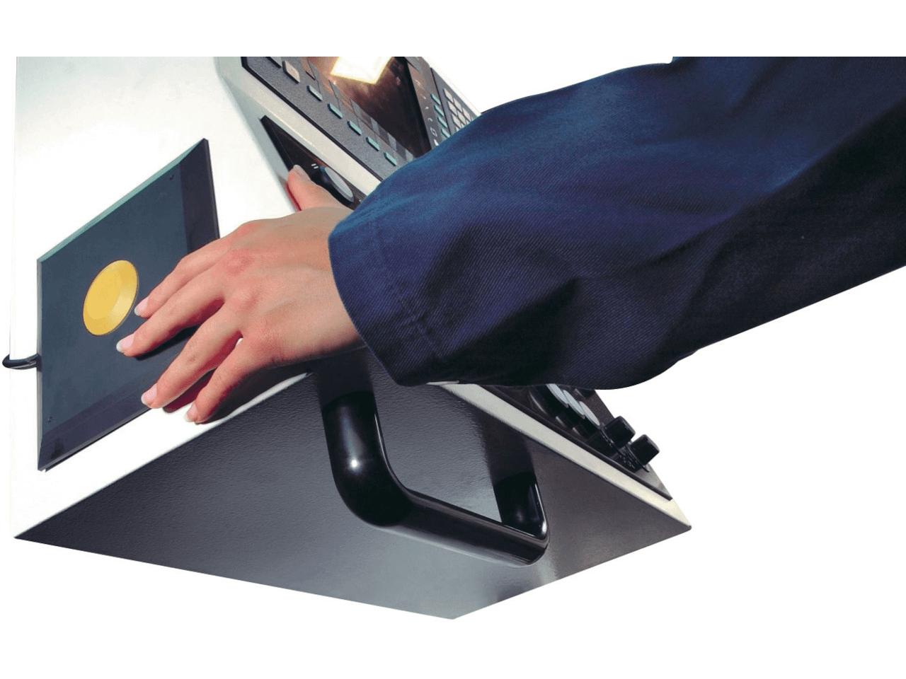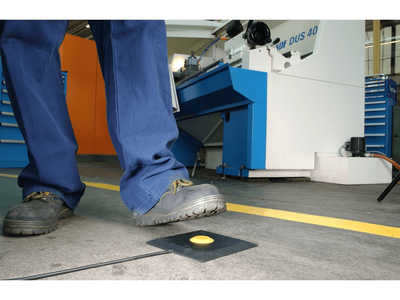 Flat pushbutton, robust design for industrial environment, activation by hand, foot or arm, output: potential-free make contact, incl. 5m connection cable
